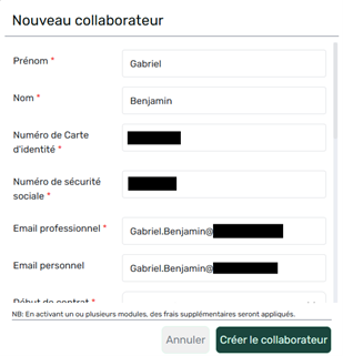 2.3. Remplissez le formulaire et cliquez sur Créer le collaborateur.