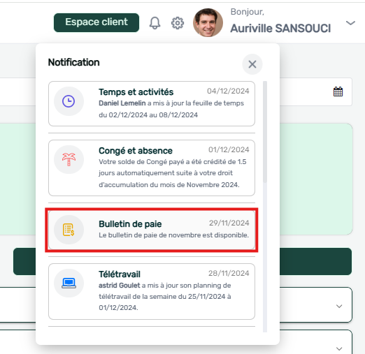 Lorsque vos responsables publient de nouveaux bulletins de paie, vous recevez :