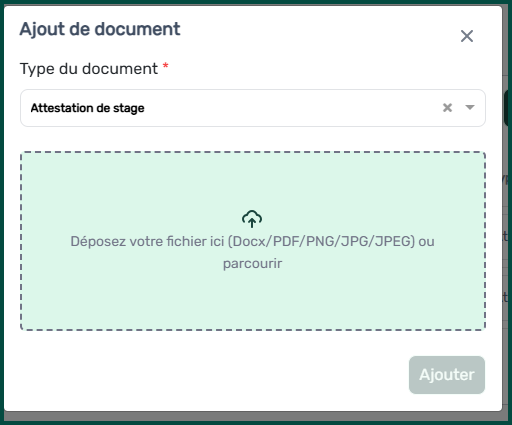 Sélectionnez le type de document (ex : Attestation de stage, Attestation de salaire, etc.).