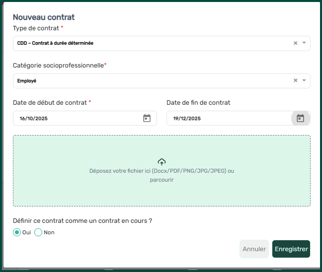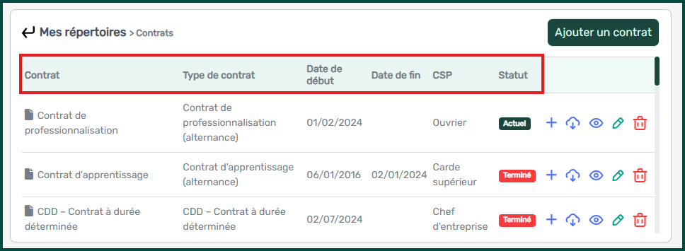 Le répertoire Contrats est un dossier particulier, préconfiguré pour gérer les contrats de travail des collaborateurs.
